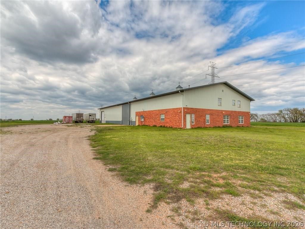 10 acres and Barndominium or office space. Fantastic warehouse with living/office quarters on gorgeous 10 acres with 9000 sq ft total. 3160 square feet set up of the living/office space leaving 5840 sq ft of warehouse space with oversized loading doors. Water and sewer. Gated entry.
